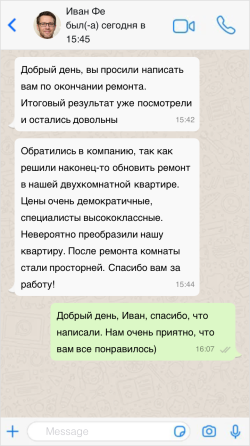 Выполняем поставку строительных материалов, подготовим дизайн-проект по желанию клиента. На цену ремонта действует площадь помещения, срок работы и выбор строительных материалов. Выполним ремонт в любой комнате: в зале, кухне, туалете, спальне, независимо, от того живете вы в хрущёвке или новом доме.